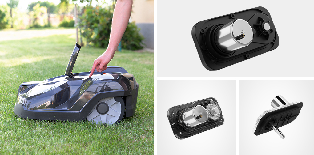 DB官方网站割草机器人微型驱动系统,采用无刷电机配合多级平行传动齿轮箱,实现减速增矩,带动割草机器人轮子旋转,提供驱动力,实现前、后、旋转移动。
