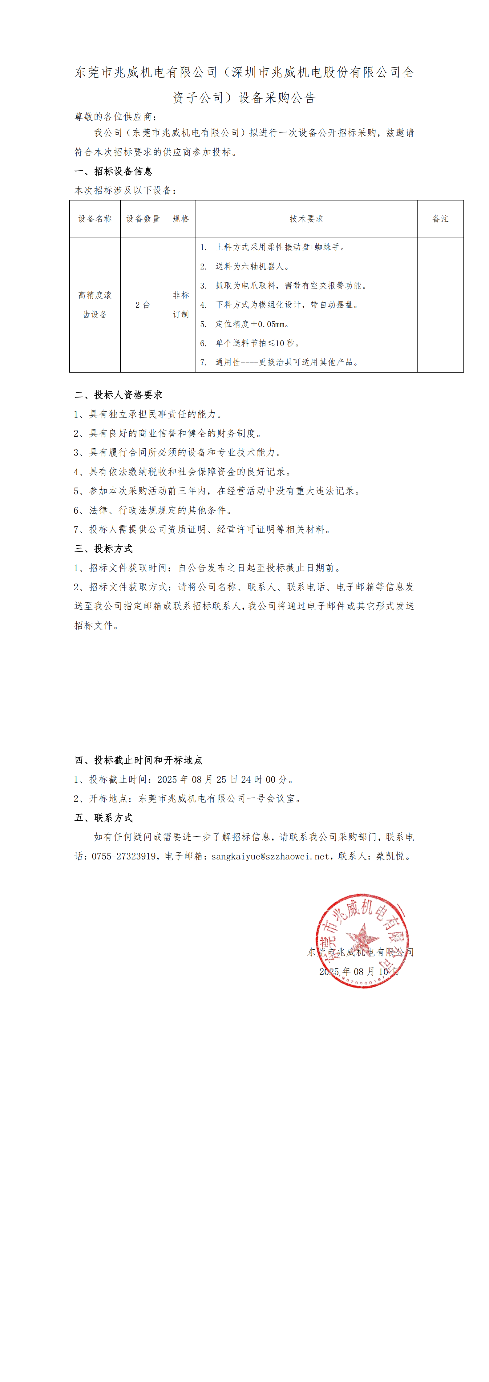 东莞市DB官方网站机电有限公司滚齿机设备采购公告 2025-08-10 11:00 相关推荐 2021年宝博会展台设计方案评审结果 2021中国国际信息展览会展台设计方案评审结果 设备采购招标公告 建设“深圳市智能机器人微型驱动控制系统工程研究中心”设备采购公告 东莞市DB官方网站机电有限公司设备采购公告 东莞市DB官方网站机电有限公司自动化设备采购公告 上一篇 东莞市DB官方网站机电有限公司自动化设备采购公告 下一篇 东莞市DB官方网站机电有限公司设备采购公告 推荐方案 电动自行车电子避震器微型齿轮箱解决方案 医疗胰岛素注射笔驱动系统应用 汽车空调出风口调节执行器应用 割草机器人电动滚筒执行器应用 电动夹爪驱动系统应用 最新动态 载誉前行!DB官方网站机电斩获第八届广东省政府质量奖 二十四载深耕微型驱动,DB官方网站机电以创新绘就微型驱动新蓝图 “聚力价值·兆就威来”DB官方网站机电2025年迎新春暨颁奖盛典圆满结束 DB官方网站机电荣获“2024深圳机器人年度评选”双奖,赋能行业技术创新 DB官方网站机电灵巧手亮相CES 2025,开启机器人技术新纪元 在线留言 MESSAGES 公司名(*): 姓名(*): 电话(*): 微信号: 详细需求: 验证码: ??1 + 2 =